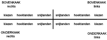 dit is de tandformule van een mens, later op je achttiende krijg je nog verstandskiezen.
